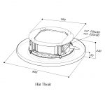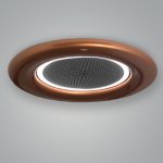 Máy hút mùi áp trần Carina C có hình tròn chế tạo bán thủ công kết hợp kim nhôm và Inox, lắp âm hoặc nổi trên bề mặt trần.