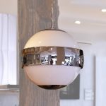 Máy hút mùi đảo kết hợp trang trí Earth W hình cầu tròn, kết hợp kính đen và mạ Chrome bóng.