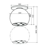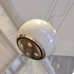 Máy hút mùi đảo trang trí treo cáp Hermes, hình cầu, chế tạo bán thủ công từ inox/polycarbonate